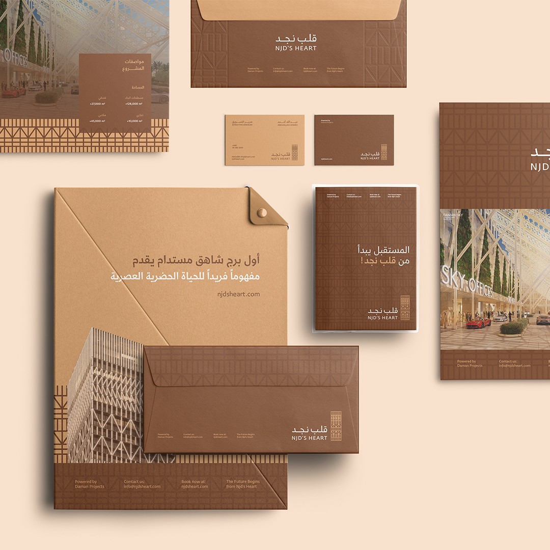 The visual identity of Njd’s Heart reflects the essence of Najd’s architectural principles and formations, blending tradition with modern real estate excellence.